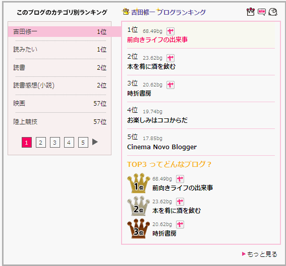ブログを開設したときに、いくつかランキングに入っています。